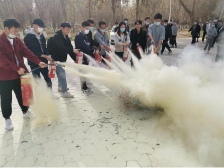 随后,在农科楼北侧展开灭火器实操演练,在党委保卫部工作人员的指导下,同学们正确的使用灭火器进行灭火,最终成功扑灭了大火,整个灭火过程迅速有序。