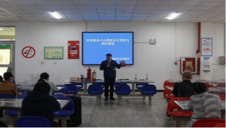 3月29日下午,党委保卫部联合饮食服务中心在第四食堂开展消防安全知识培训和消防演练。兵团天安消防安全培训学校老师赵玉龙应邀授课,师市消防支队、饮食服务中心全体工作人员参加。