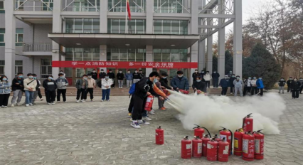 在党委保卫部工作人员的指导下,学院师生现场分别使用干粉灭火器和二氧化碳灭火器,对火源进行灭火,顺利完成了灭火任务。