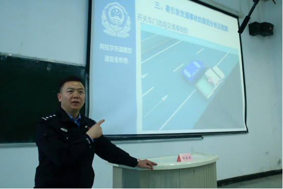 3月9日下午,党委保卫部邀请第一师阿拉尔市公安局交警支队秩序大队大队长胡东方警官,在综合楼阶教三开展“校园交通安全”专题讲座。