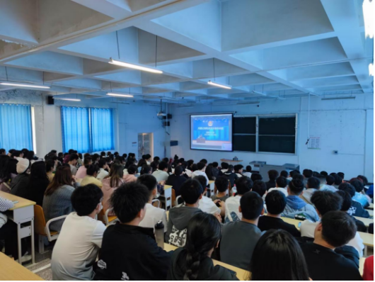 食品科学与工程学院学生在综合楼各教室收看讲座