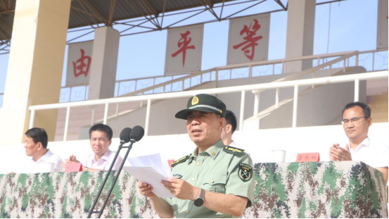 武警兵团总队执勤第二支队大校支队长李健希望同学们发扬勇敢、坚毅、顽强、拼搏的精神,努力把自己培养成为品学兼优的有为胡杨青年、对国家社会人民有用的栋梁之材。